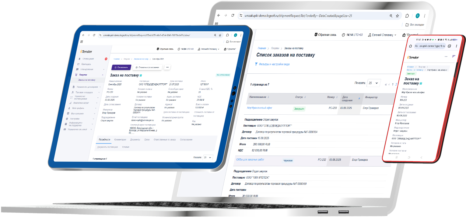 Модуль «Заказы на поставку» используется для автоматизации и ускорения работы с поставщиками напрямую в двух решениях на платформе iTender: