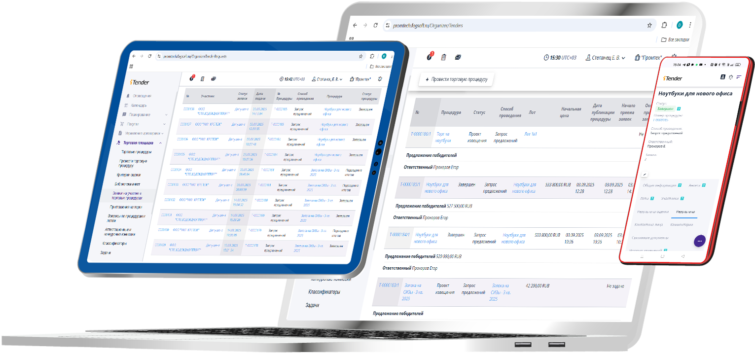 Предложения поставщиков ранжируются автоматически — система назначает победителем тендера лучшее предложение